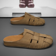 高品质真皮大头休闲半拖鞋