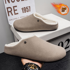 吕尚鞋业爆款加绒复古一脚蹬懒人防滑拖鞋博
