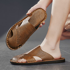 生活 男士休闲鞋拖鞋镂空皮鞋洞洞凉鞋真皮