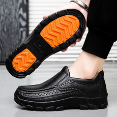 新款男士皮面止滑鞋防水防滑厨师鞋餐饮行业