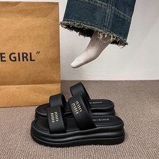 大有鞋业夏季女性厚底增高小个一字拖鞋脚宽